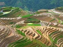 De voorbije zomer van 2011 ben ik (Le Ye) naar China geweest samen met mijn ouders, mijn broer en mijn zus. China is natuurlijk veel te groot om in één keer te bezoeken dus hebben we enkel de regio van Guilin en Shanghai bezocht. Zodat we dat konden combineren met het noorden van Vietnam. Vietnam deden we samen met nog twee andere bevriende gezinnen. Maarja, het gaat nu over China. Het was niet zo gemakkelijk om rond te reizen in China omdat we niet met een reisorganisatie gingen en er bijna niemand Engels spreekt in China... de was onze grote held ons mama, zij had een jaar Chinese les gevolgd en kon toch verrassend veel bereiken met haar woordenschat! In China is er een heel vochtig klimaat. Daar is het erg warm en door de vochtigheid zweet je heel gemakkelijk en heel veel. Het was een hele leuke en spannende reis van vijf weken. We zijn ook naar Ping An geweest dat is een dorpje waar een minderheidsvolk woont. Daar zijn rijstterassen het is super mooi daar. Naast de tekst zie je een foto van de rijstterassen.